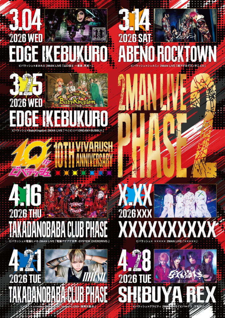 2026年04月28日(火) ビバラッシュ×グラビティ 2MAN LIVE 「ビバ∞グラ -万有引力-」 ■会場 渋谷REX ■時間 OPEN 17:00 / START 17:30 ■チケット 前売:¥4,500 当日:¥5,000 ■出演 グラビティ ビバラッシュ ■チケット発売日 e+プレオーダー 受...